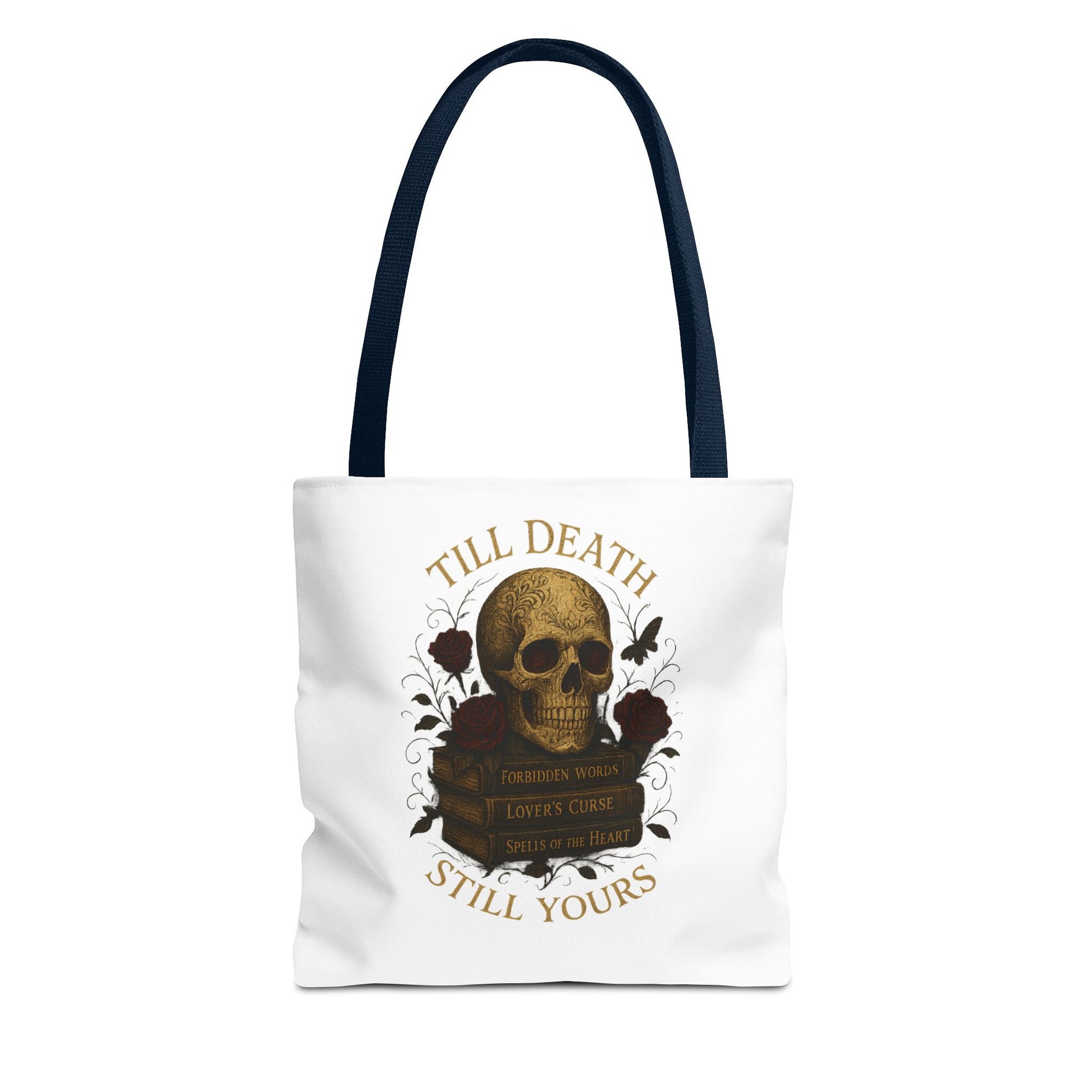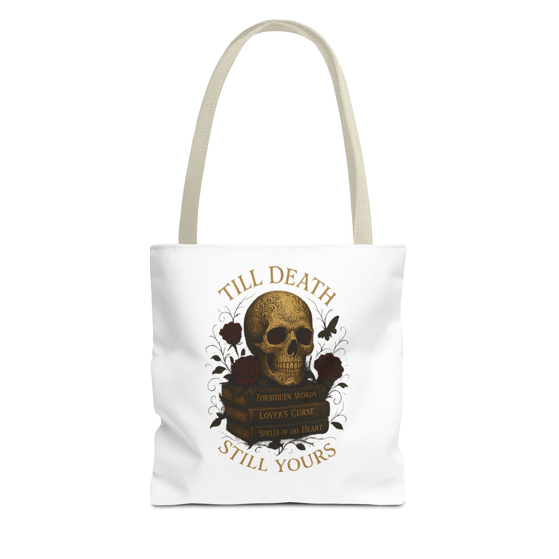 Till Death Still Yours Skull Tote Bag — Gothic Romantic AOP Tote